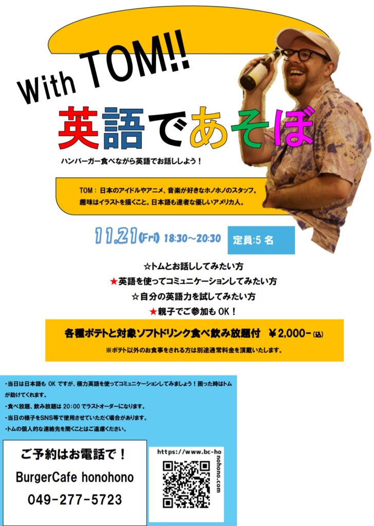 🍔英語であそぼ With TOM!!!参加者募集スタート🎉