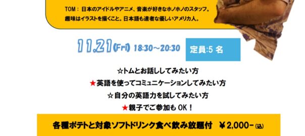 当日は日本語もOKですが、できるだけ英語でコミュニケーションしてみましょう!