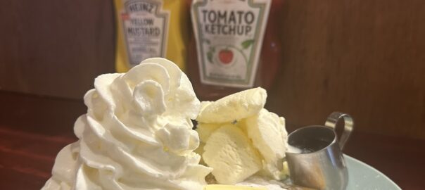 パンケーキ専門店にも負けない、生地だけでも美味しいパンケーキにバニラとホイップをトッピングして幸せ気分。