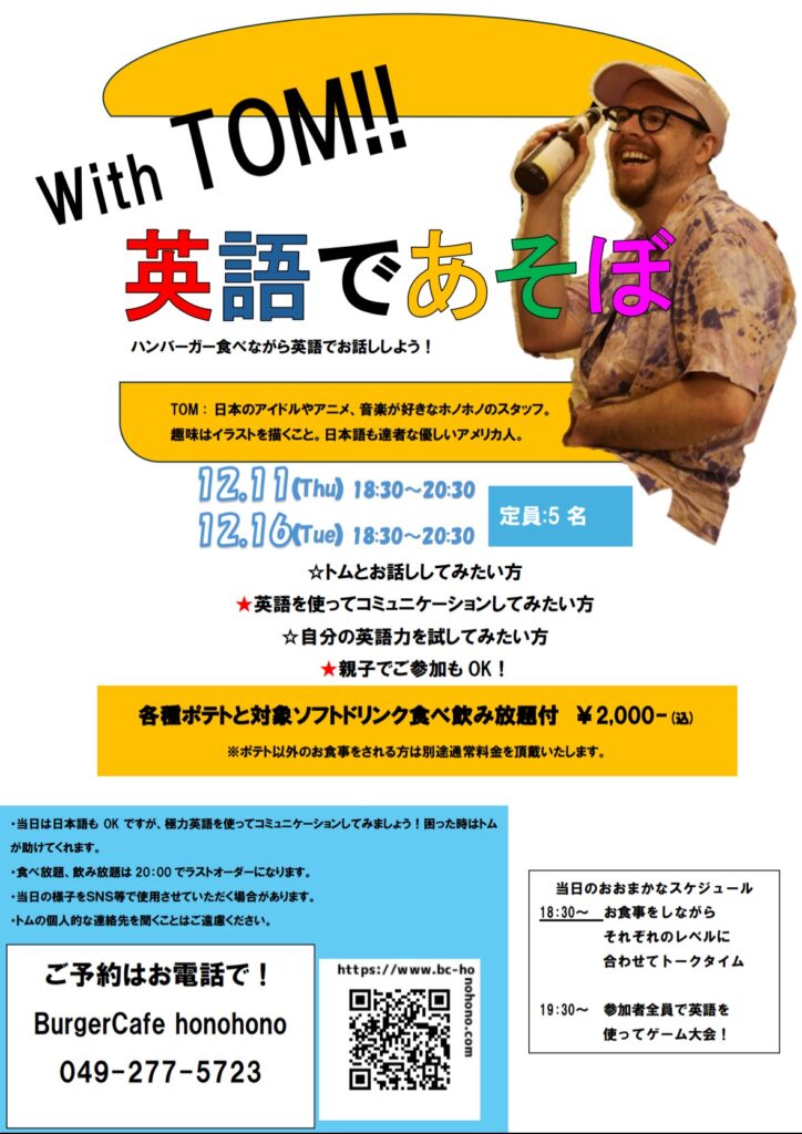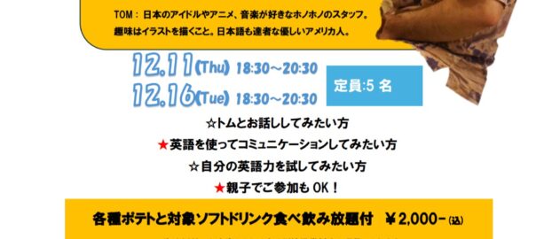 【英語であそぼwith Tom!!】12月は2回開催です!