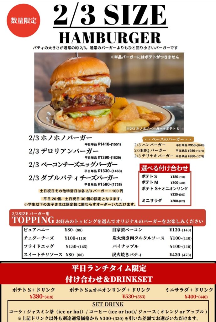 good morning! Burger Cafe Honohono is a charcoal-grilled gourmet burger specialty store!